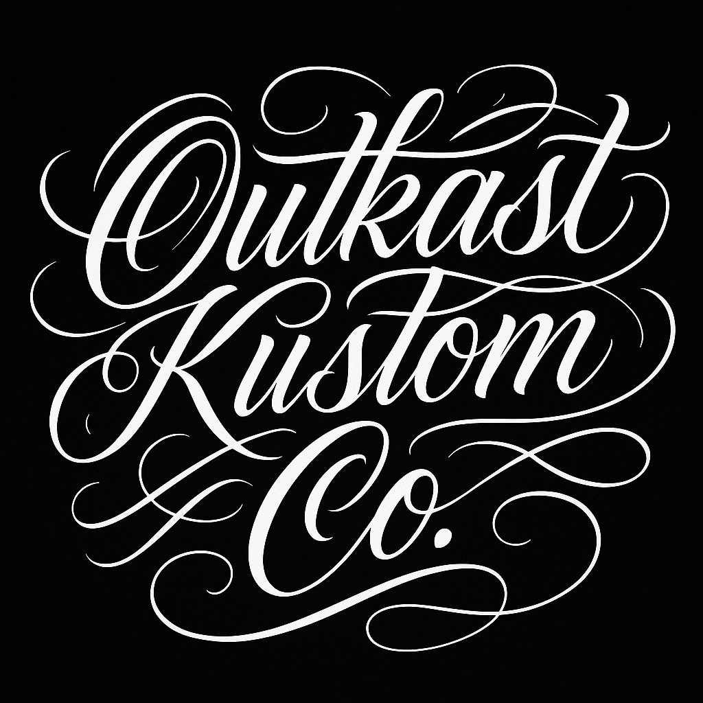 OutKast Kustom Co. shield logo Crewneck Sweatshirt | Script back logo, sleeve script
