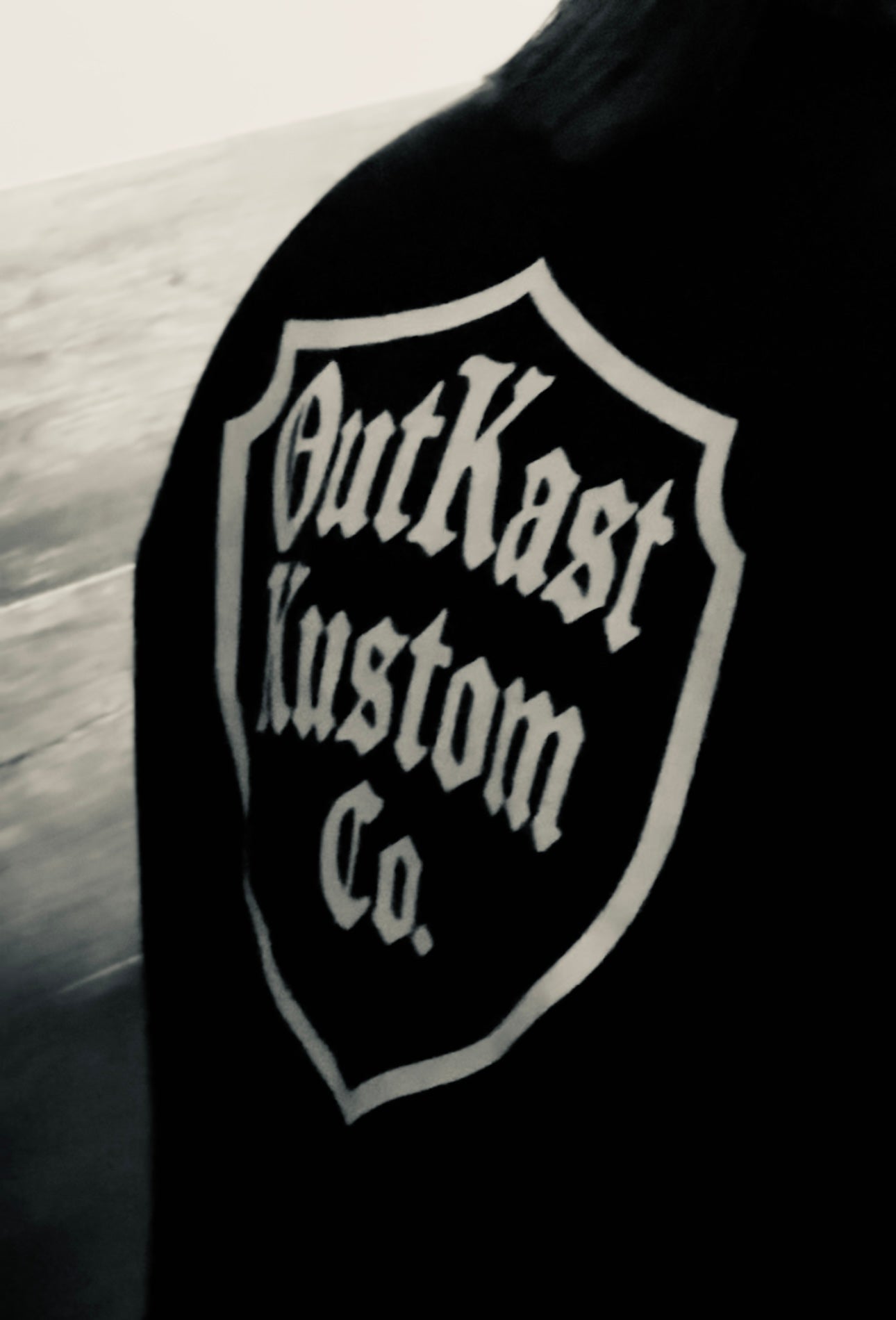 OutKast Kustom Co. Long Sleeve Tee — Vintage Shield Front & Script Back